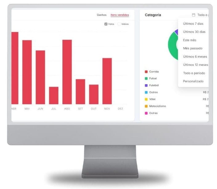 Agora, você pode visualizar separadamente fotos e vídeos vendidos, comparar períodos, entender tendências e acompanhar sua evolução mês a mês.