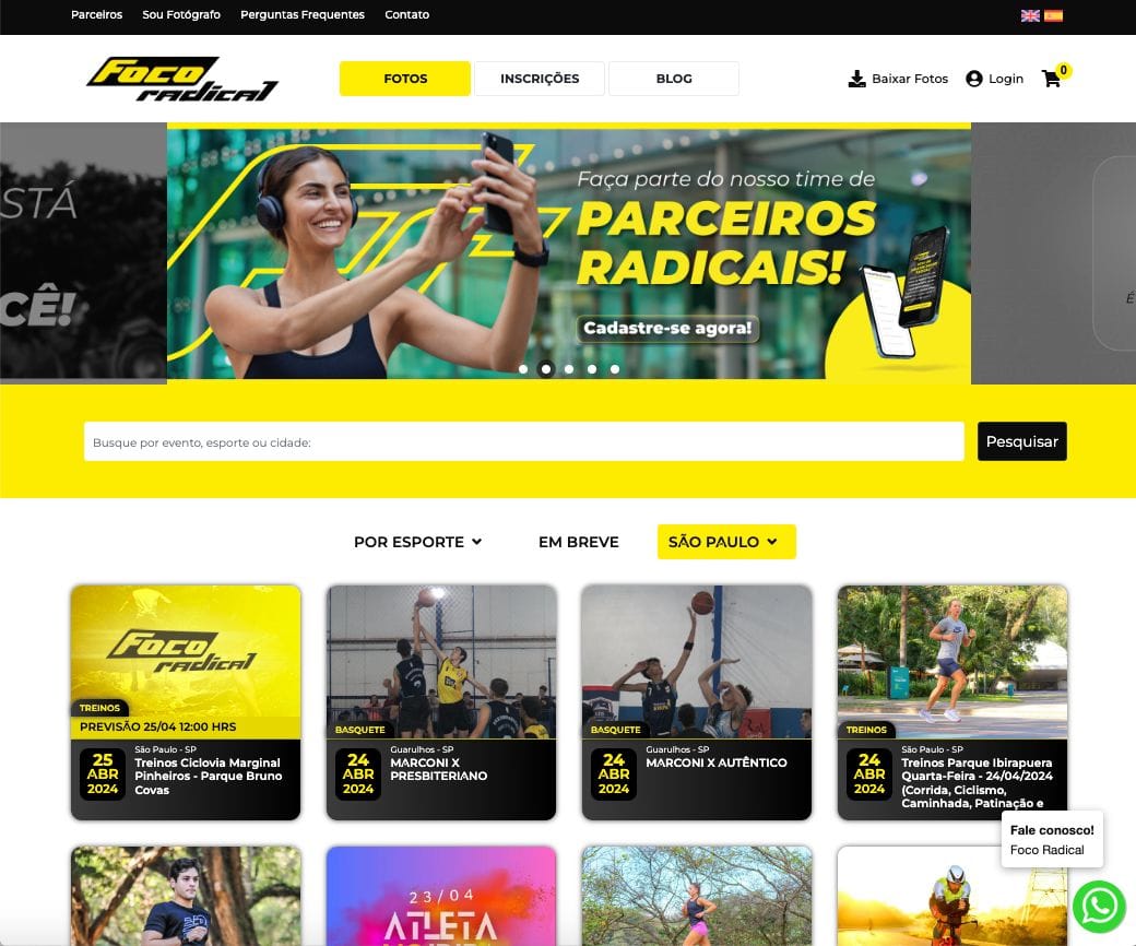 A Foco Radical é uma plataforma bastante focada em eventos de corrida, triathlon e, recentemente, vem crescendo em outras modalidades esportivas.