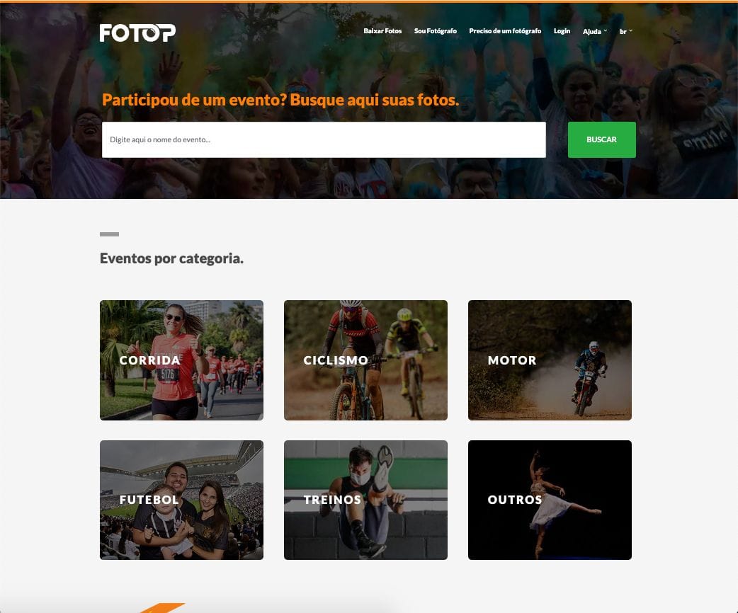 A Fotop é uma plataforma de venda de fotos que se destaca por sua ampla exposição em fotos de corrida e esportes de grande escala.